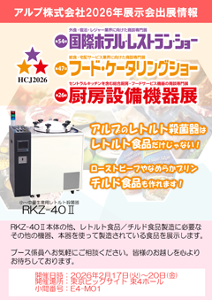 私どもアルプは、従来より販売しておりました小型レトルト殺菌器RKZ型に改良を加え、先進の一次加熱技術によって、より確実な殺菌性能を獲得した『RKZ-40Ⅱ型』をこの度開発いたしました。